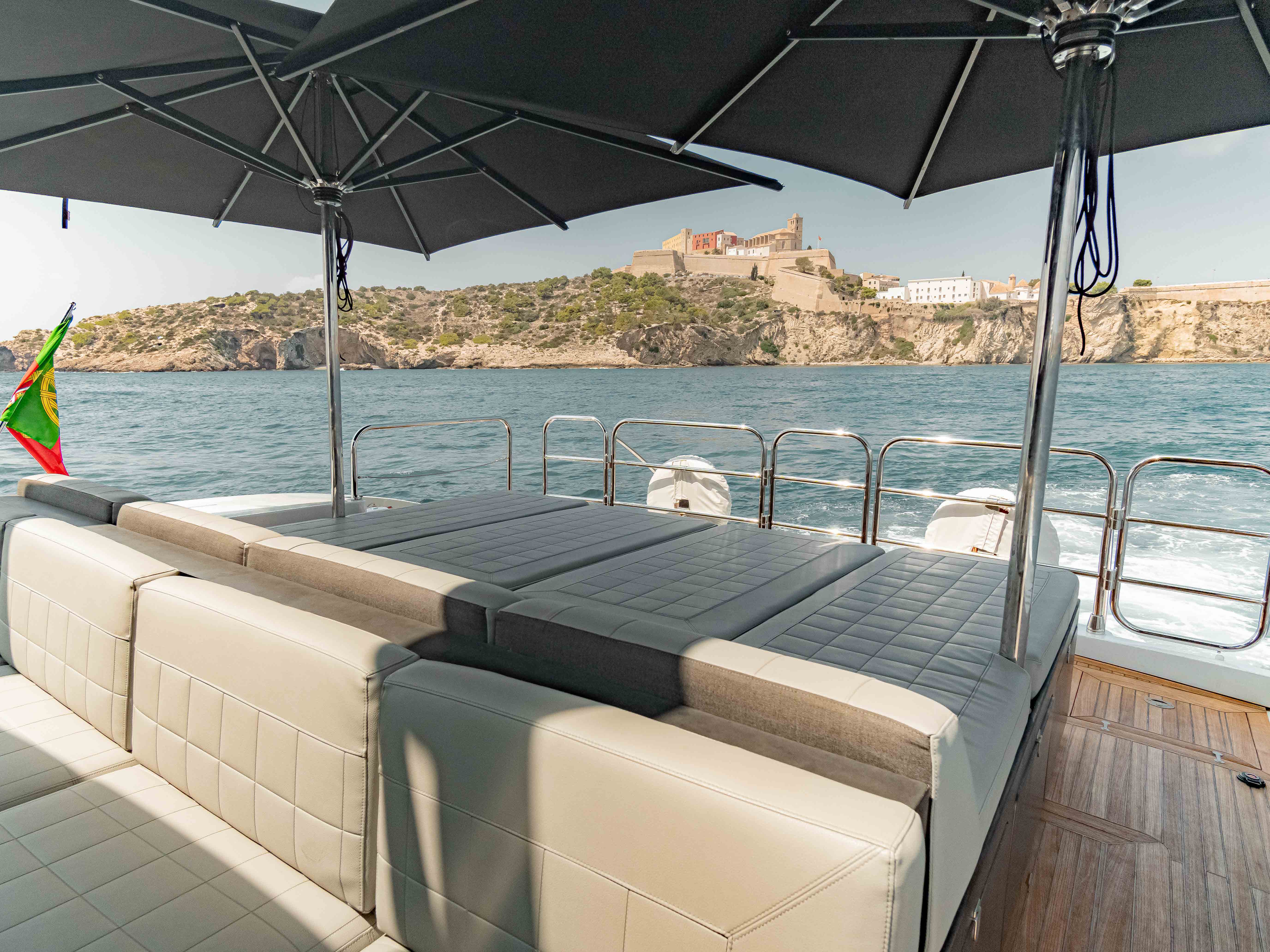 - Included: Captain, deckhand, stewardess, insurance, towels, complimentary drinks (water, ice, 24 soft drinks, 18 beers, 2 white wine, 2 rosé, 2 cava, 1 Champagne), snacks, fruit, snorkelling equipment, 2 paddle boards, 1 seabob, jet ski, inflatable toys